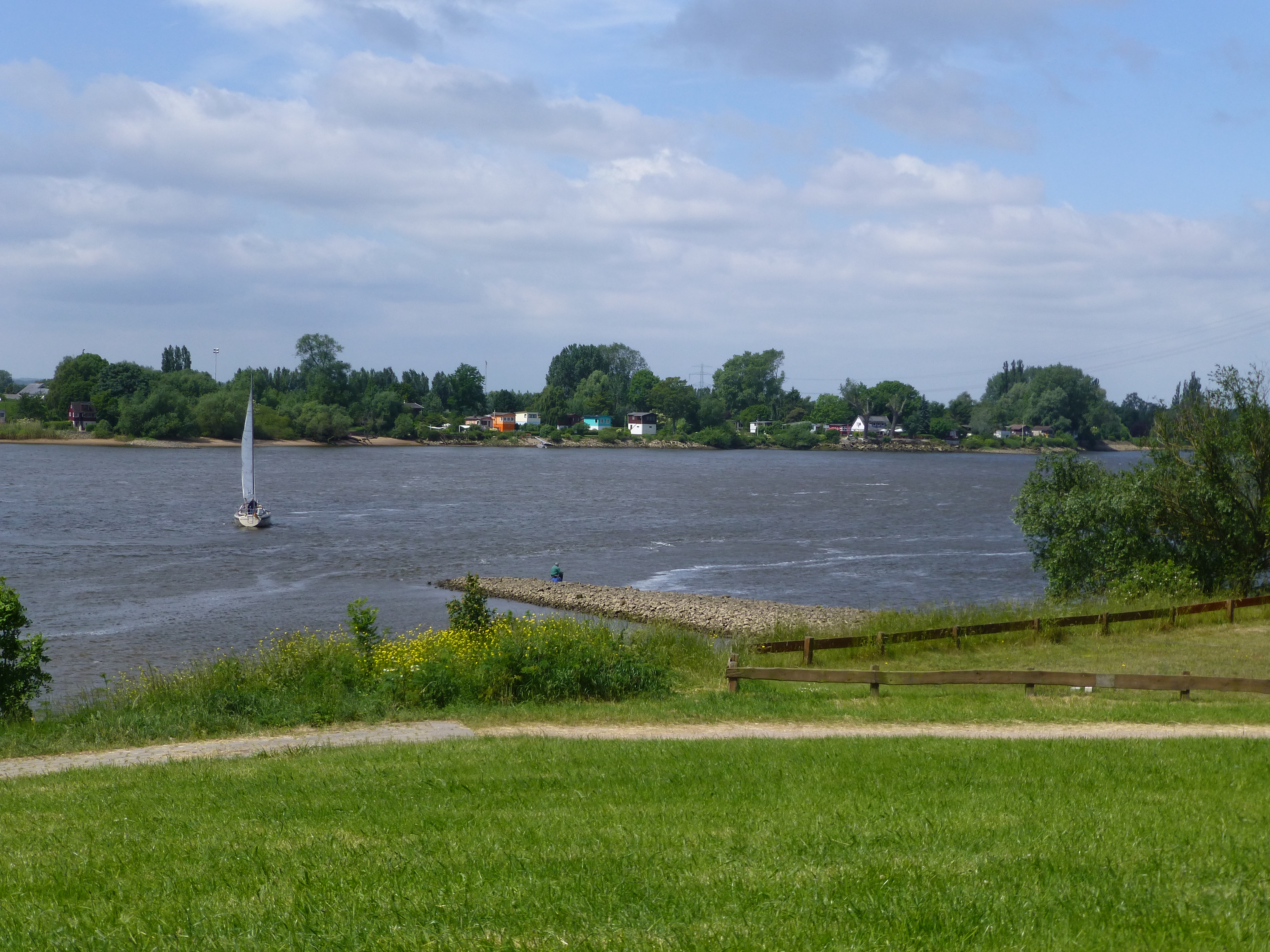 Am Leuchtfeuer Bunthaus biegen wir über Steuerbord in die Süderelbe ab. Vorbei an den Naturschutzgebieten Heuckenlock und Schweenssand erreichen wir den Harburger Seehafen.